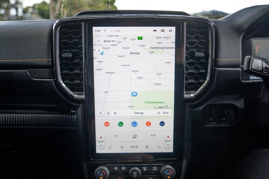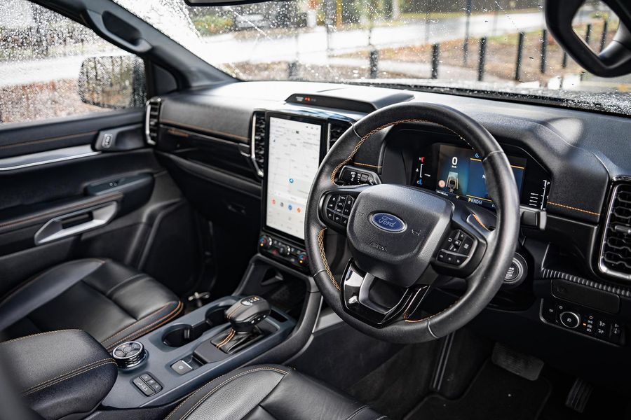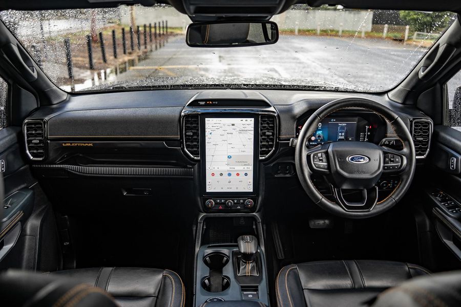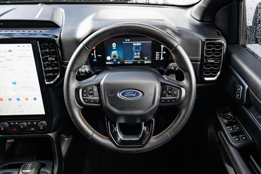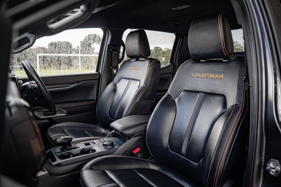 Inside, the Wildtrak trim offers a premium cabin with leather-accented seats, touchscreen infotainment with smartphone connectivity, dual-zone climate control, and advanced driver-assist technologies.