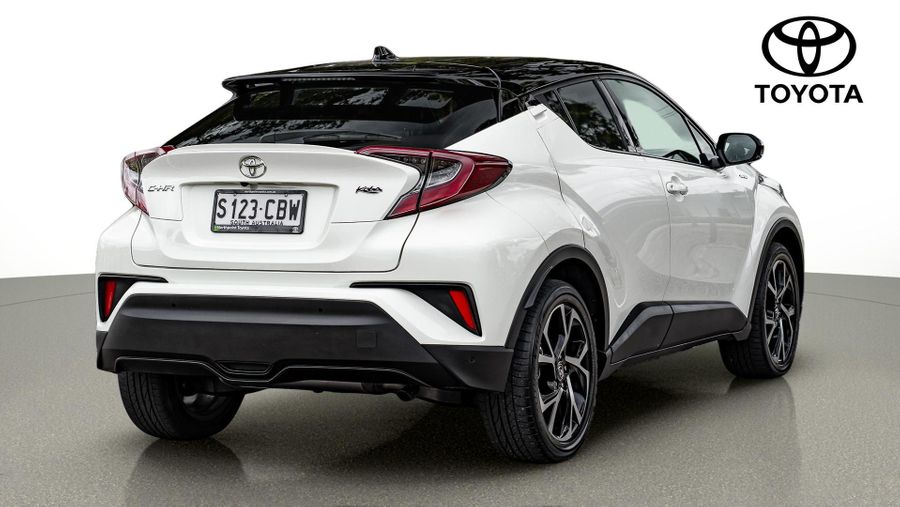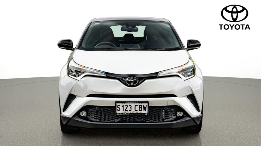 Stylish and compact, this white 2019 Toyota C-HR Koba combines sporty design with everyday practicality.