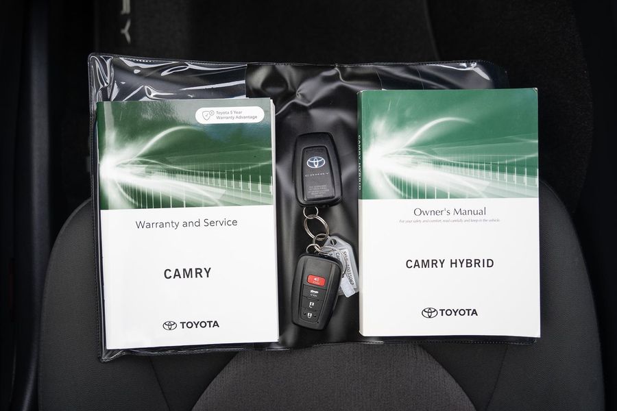 Experience the comfort and efficiency of this White 2021 Toyota Camry Ascent Hybrid, a refined sedan that blends reliability with impressive fuel economy.