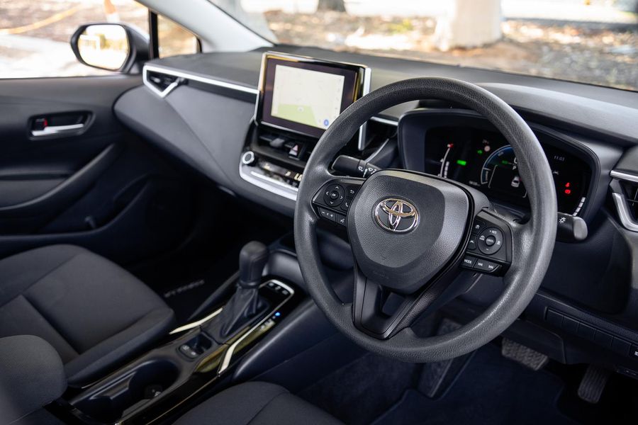 Powered by a 1.8-litre petrol engine paired with a 70kW hybrid system and smooth E-CVT transmission, this Corolla delivers quiet, responsive performance with impressive fuel efficiency.