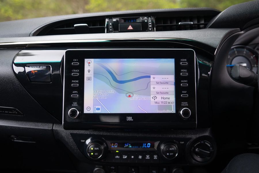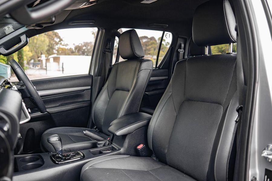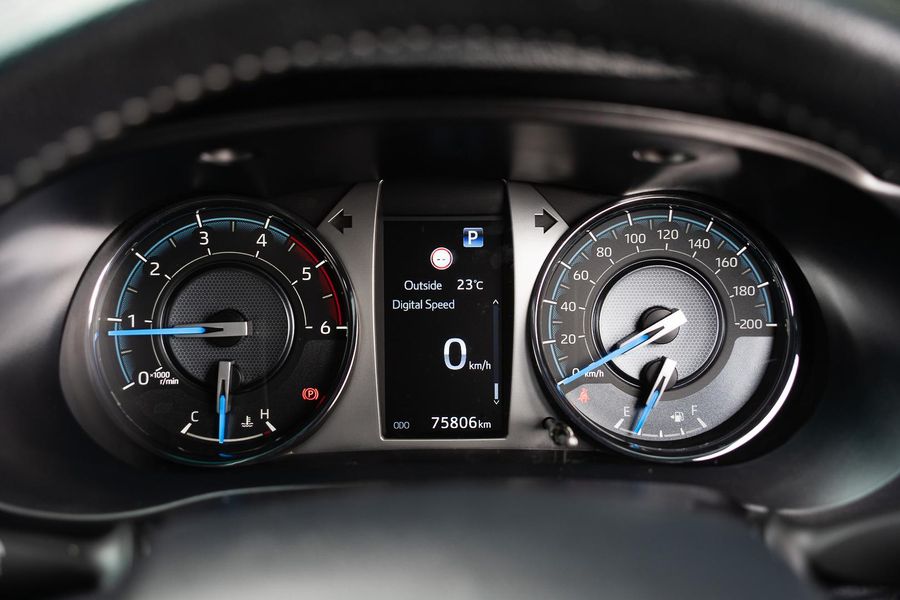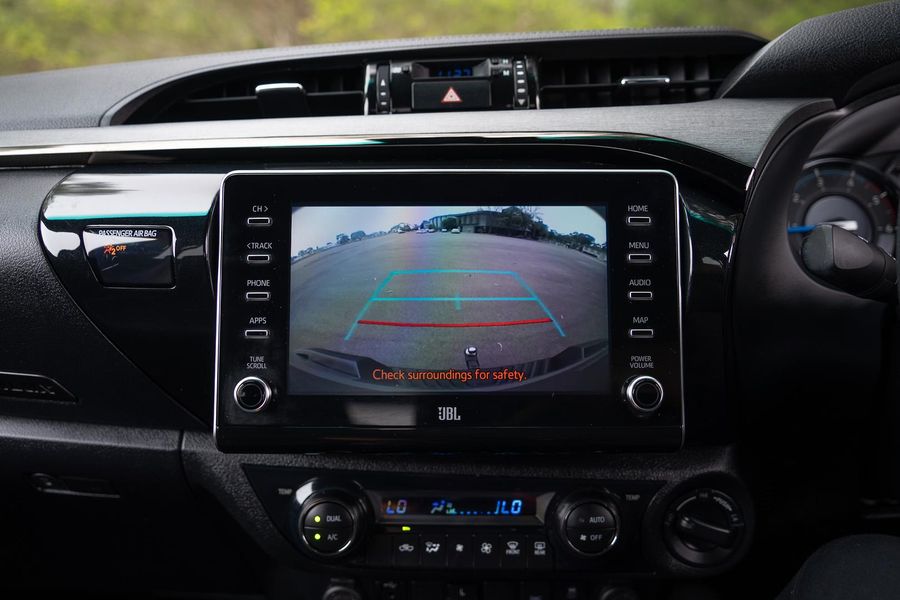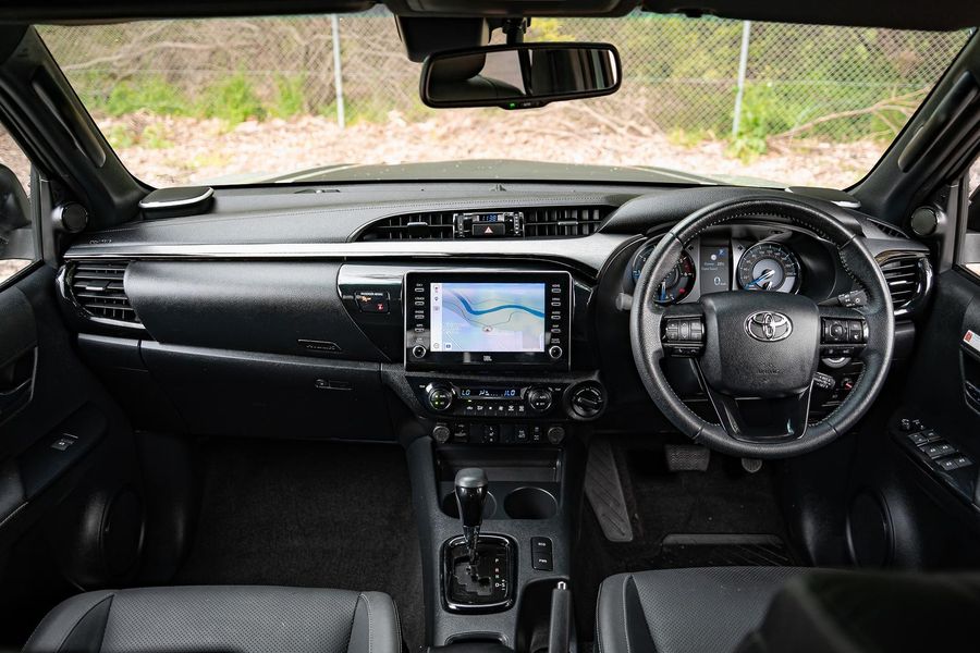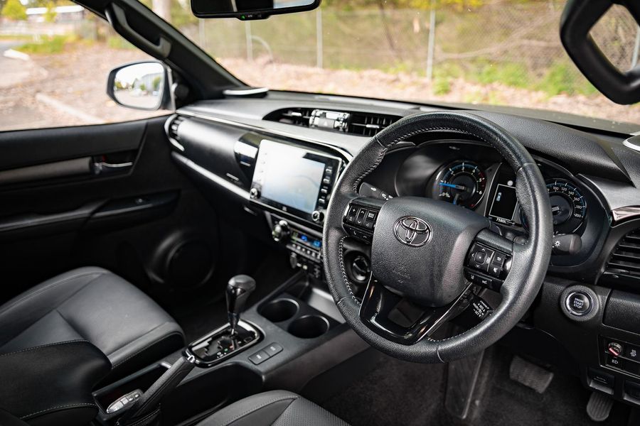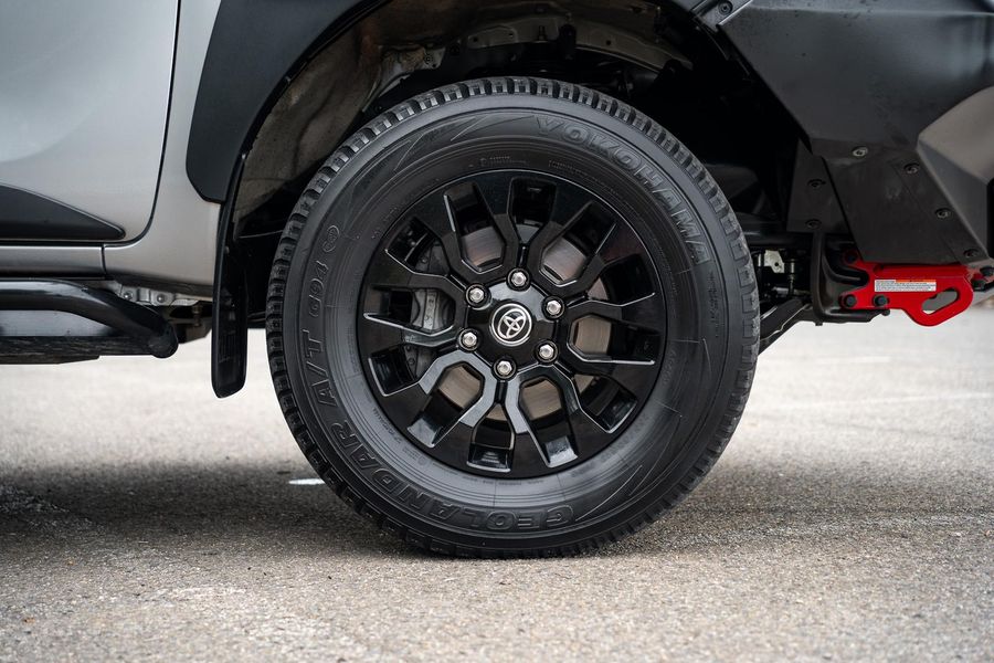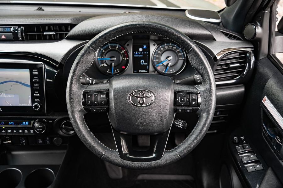 The exterior presents a bold and aggressive look, reflecting the Hilux’s renowned durability and rugged capability.