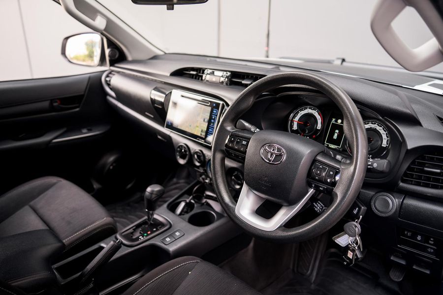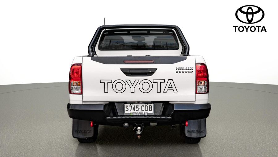 Experience tough capability, proven reliability, and rugged styling with this white 2019 Toyota HiLux Rugged, a purpose-built 4x4 dual cab designed to handle demanding work and off-road conditions.