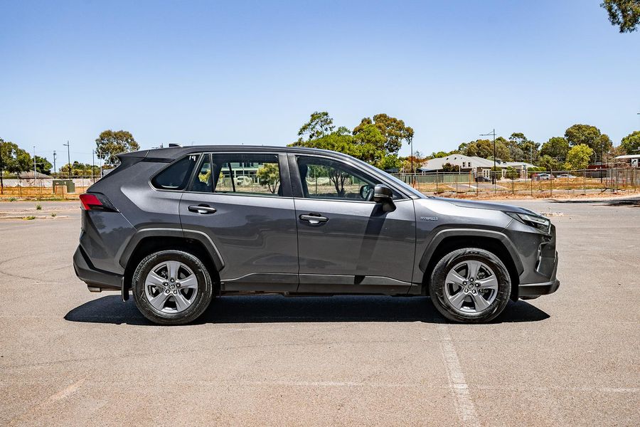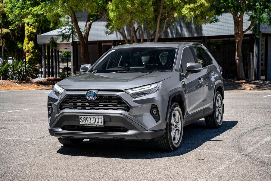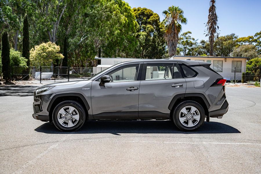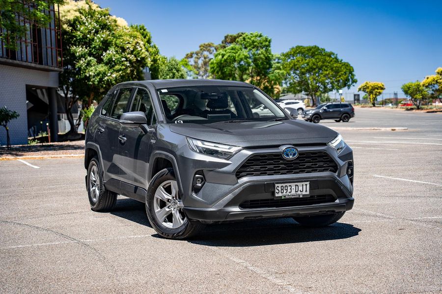 Experience efficient performance and everyday versatility with this grey 2023 Toyota RAV4 GX Hybrid, a practical and reliable SUV with 62,000 kilometres travelled.